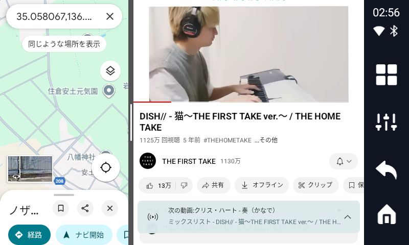 こんな使い方ができます。5:5、3:7、7:3など分割比率も選べるので、 YouTubeを大きくしつつ、ナビも見たい なんてワガママも叶います。